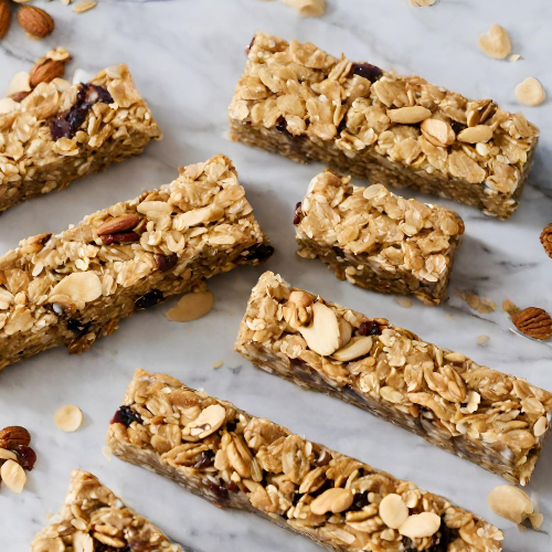 오트밀, 아몬드 슬라이스, 견과류, 꿀, 시나몬, 바닐라 추출물을 큰 볼에 넣고 섞어주세요. 형태를 만들기 위해 형태를 만든 후 30분 동안 냉장고에 넣어주세요. 이 간단한 그래놀라 바는 언제든지 건강한 간식으로 즐길 수 있어요.